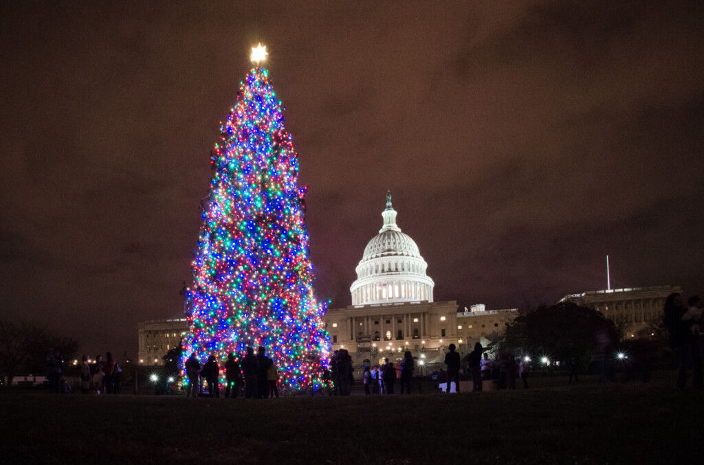 1. Illuminating the U.S. Capitol West Lawn in Washington, D.C., the Capitol Christmas tree stands as a beacon of holiday cheer.