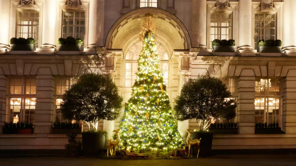 10. Rosewood London’s 2023 Christmas tree, standing at 24 feet, marks the conclusion of the hotel’s 10th-anniversary celebrations. Adorned with Garrard’s abstract Wings baubles in gold and midnight blue, the tree is a glittering masterpiece best enjoyed from the courtyard terrace with festive bites and a glass of Ruinart Champagne in hand.