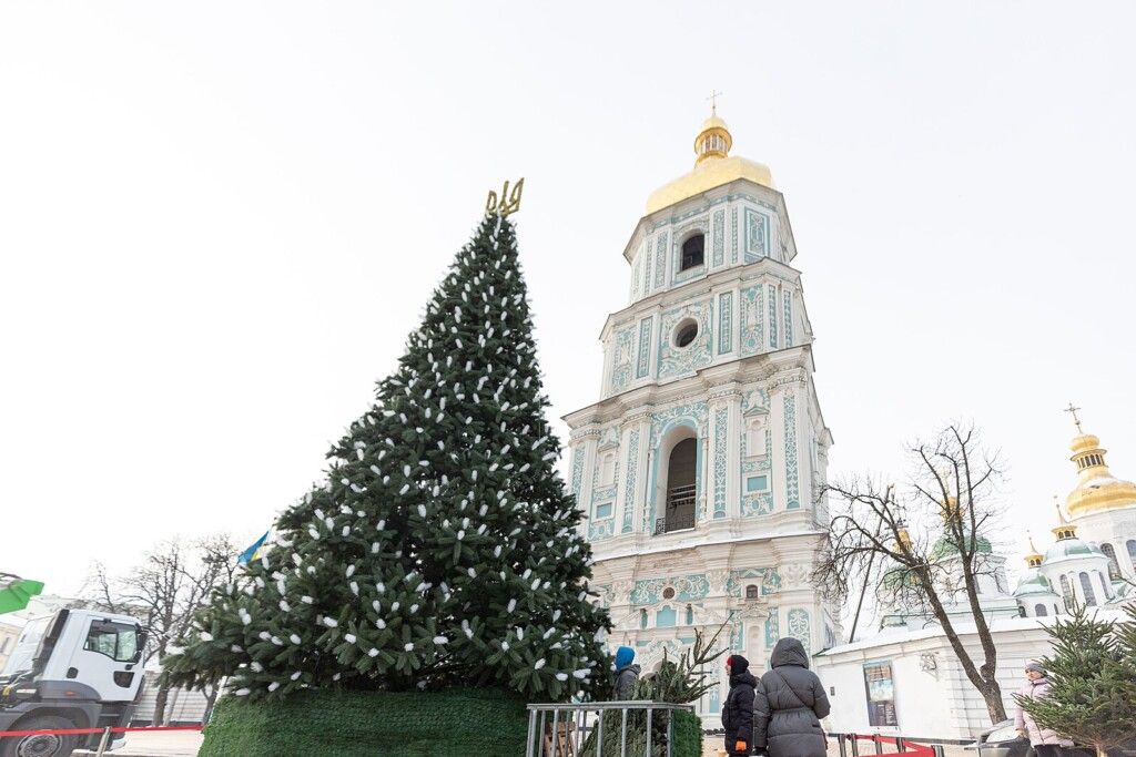 6. The main Christmas tree of Ukraine, located outside Saint Sophia Cathedral in Kyiv, features the trident, a significant national symbol.