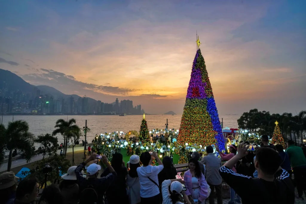 7. In Tsim Sha Tsui, Hong Kong, a blossoming Christmas tree adds enchantment to the city’s skyline.
