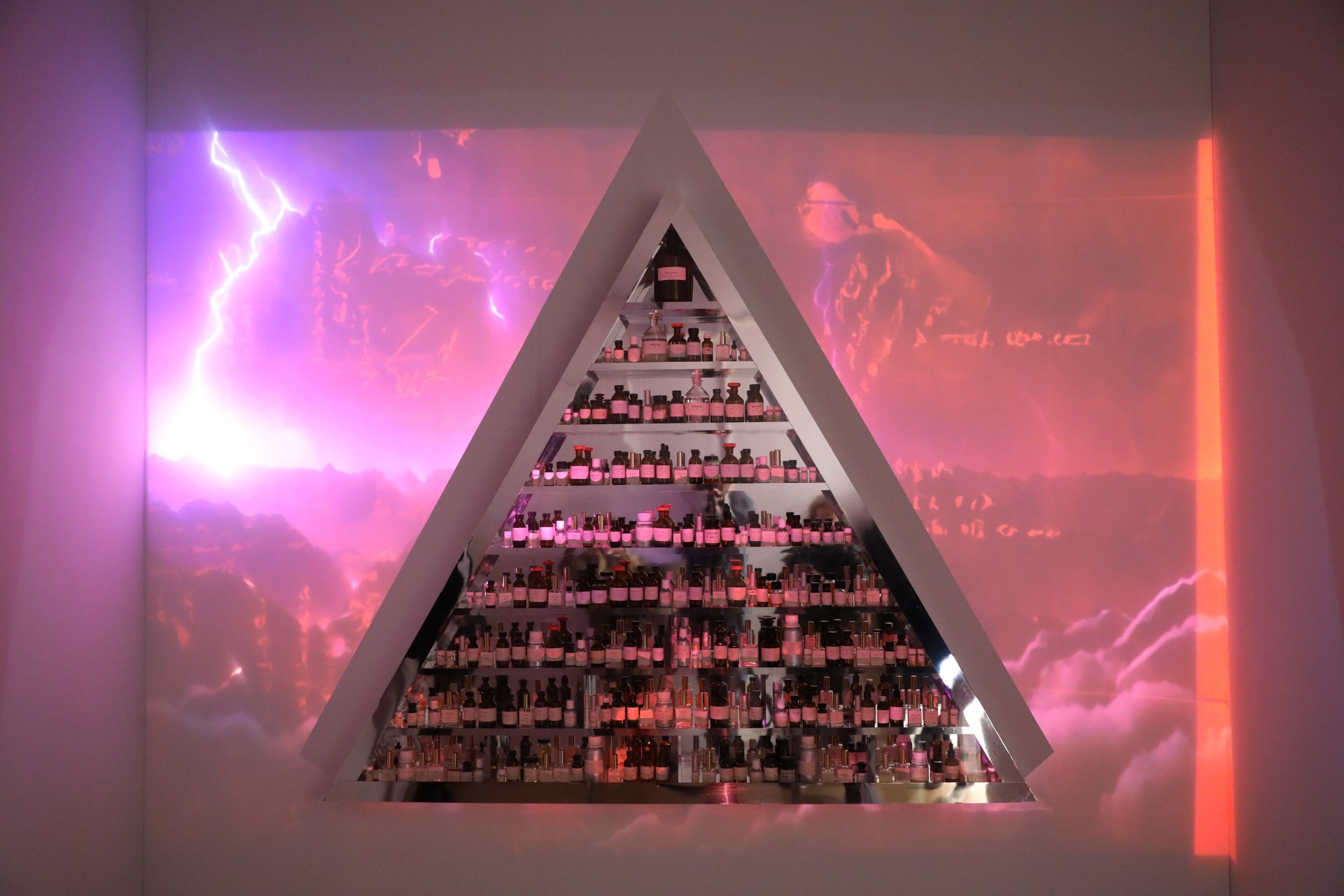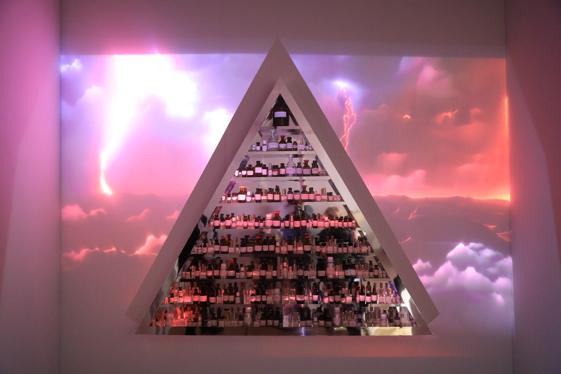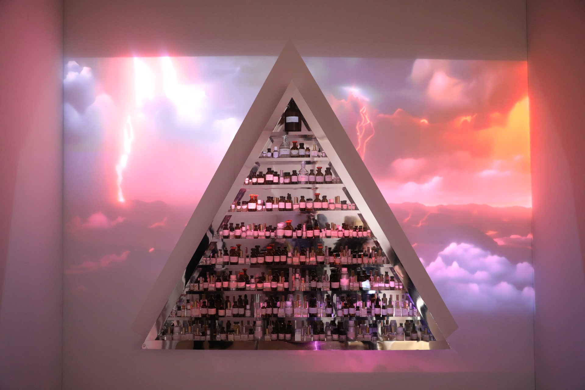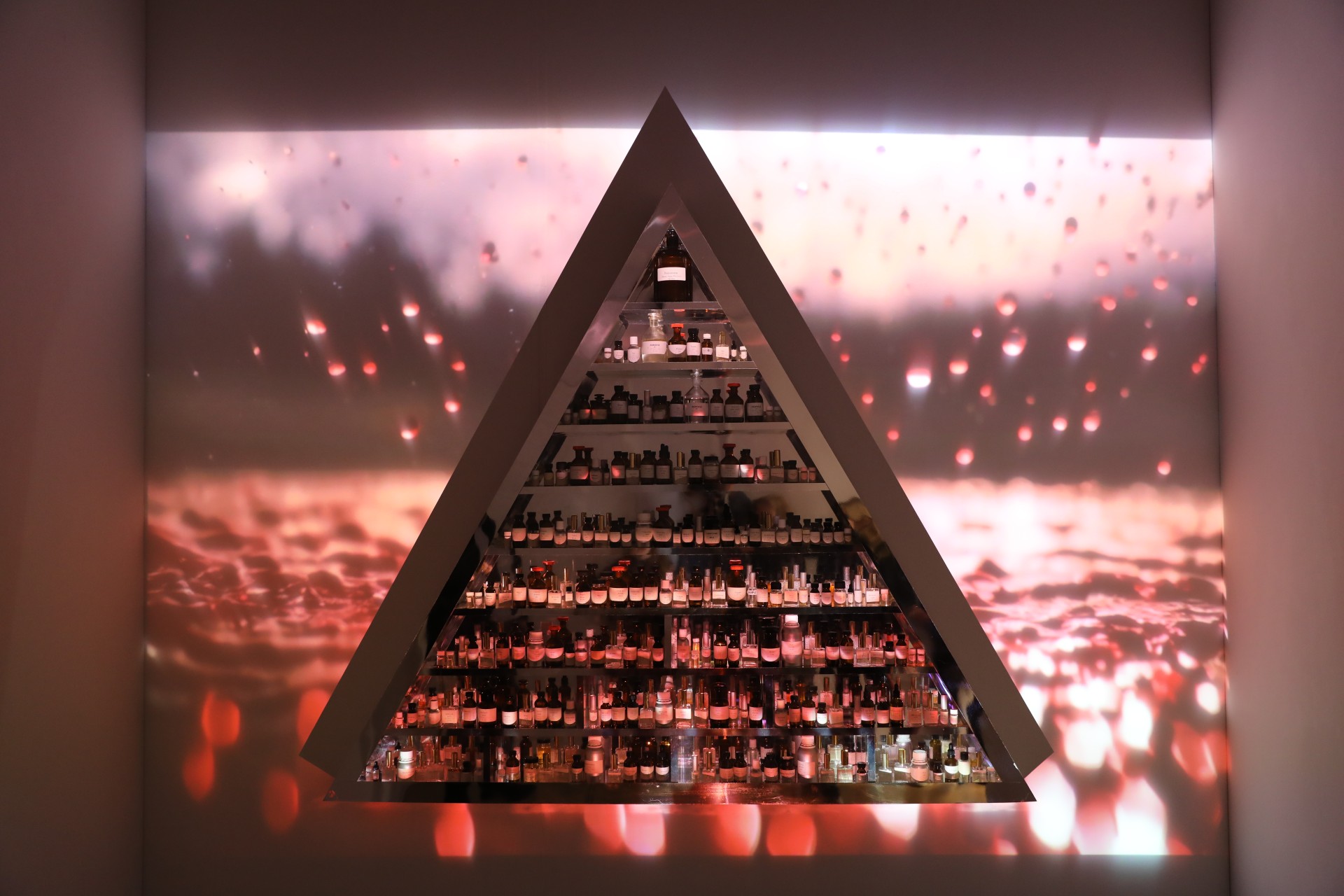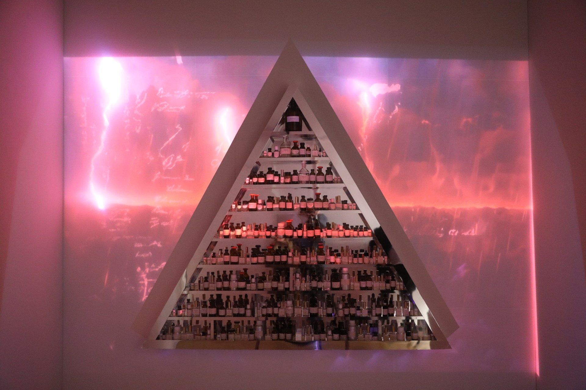 Each part of the formulation process, where you will physically see the notes, the ingredients, the accords, which have been encased in the giant Fragrance Pyramid also designed by me.