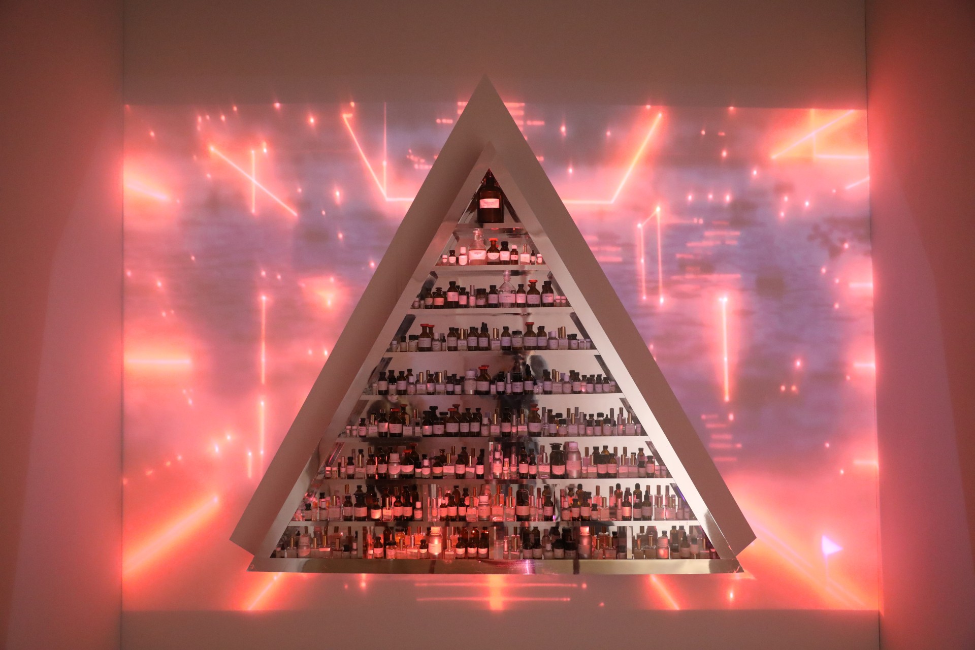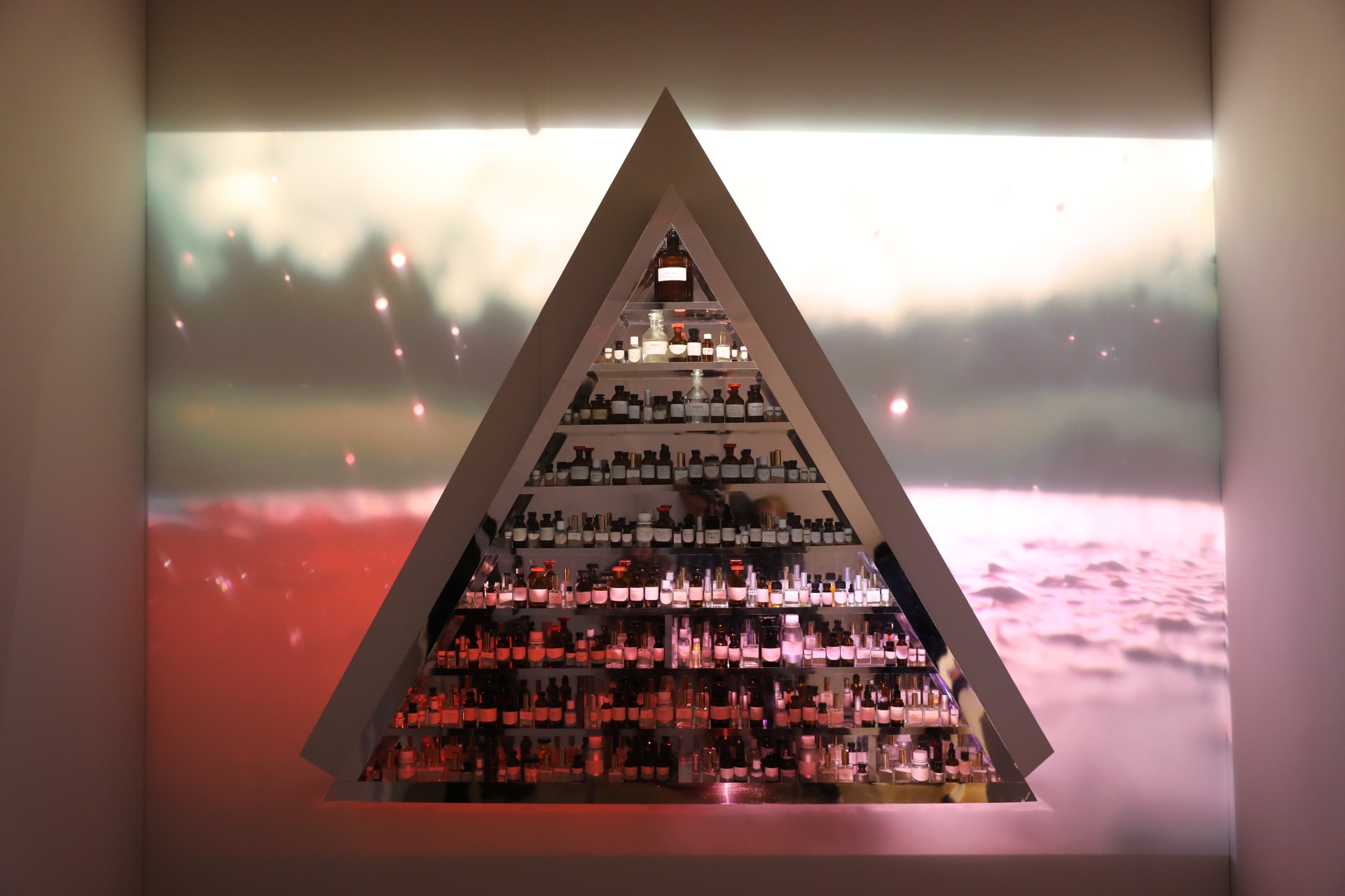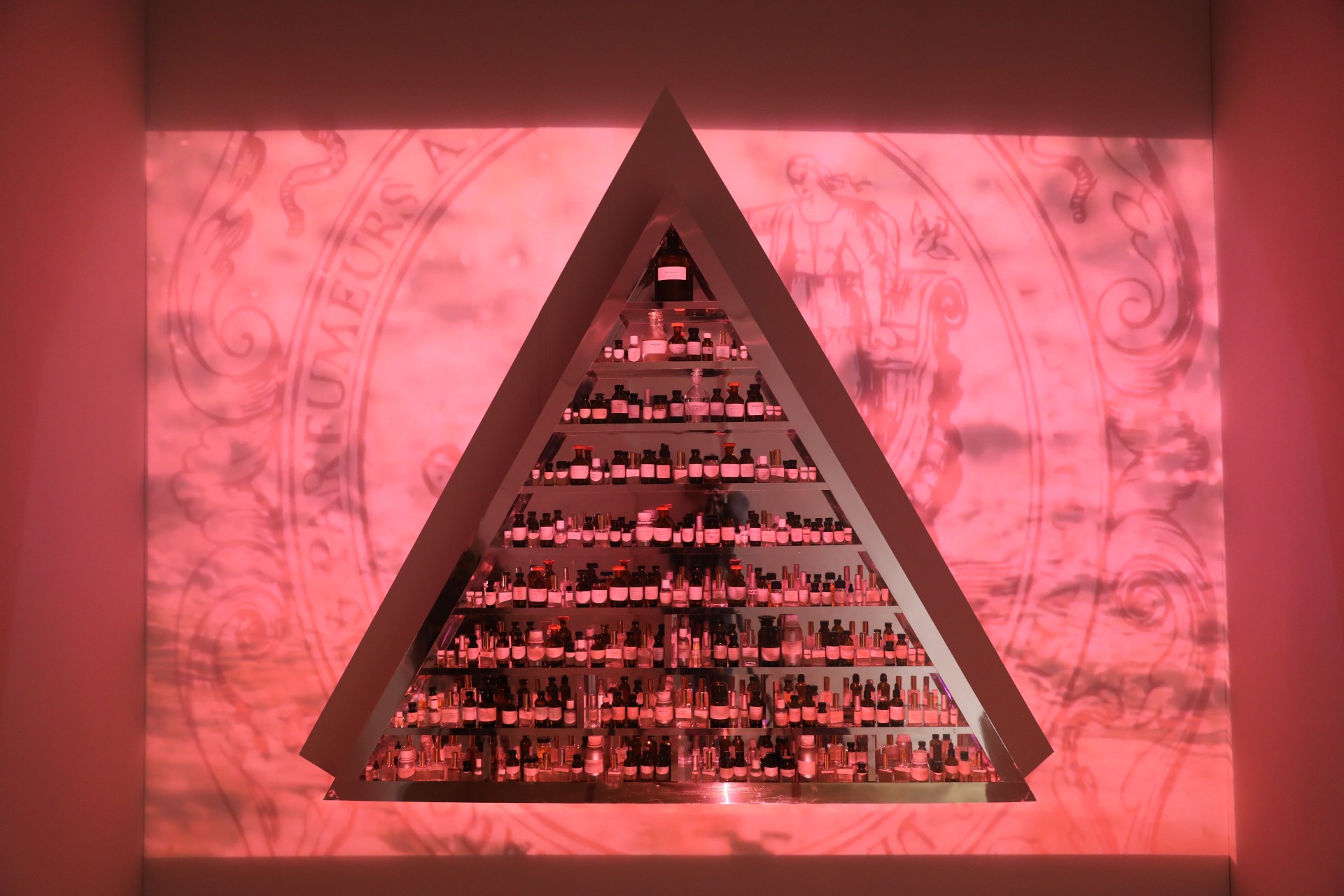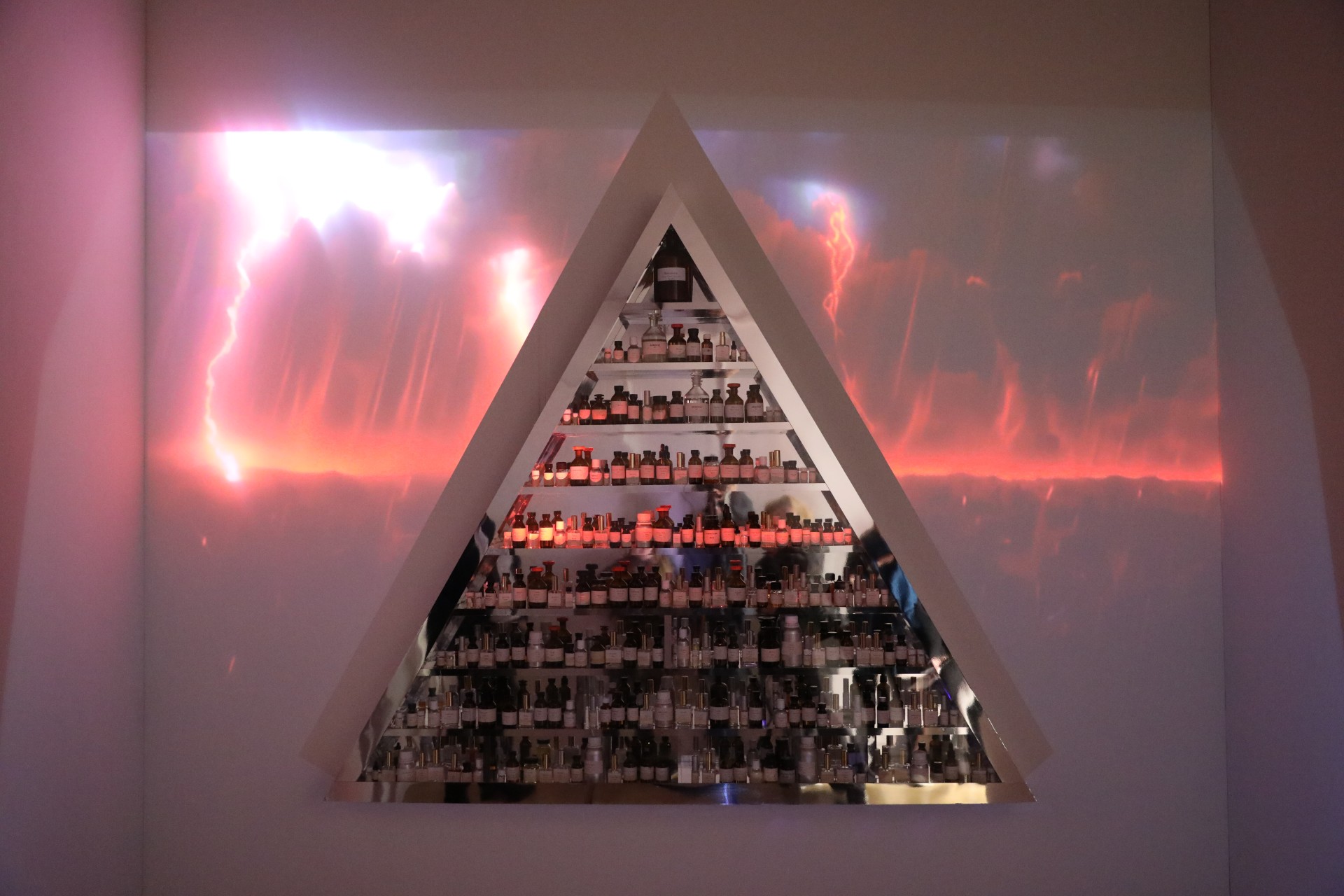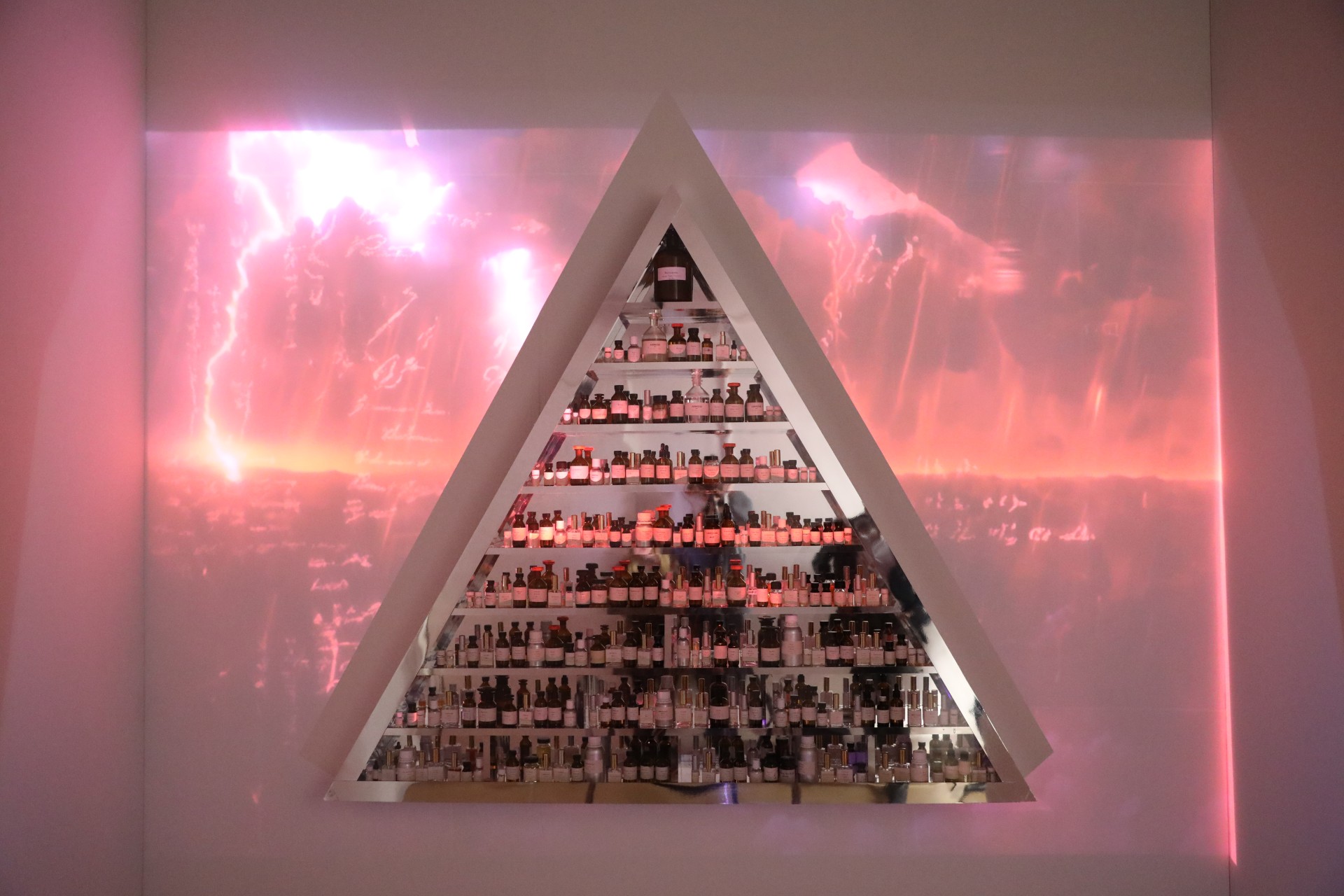Each part of the formulation process, where you will physically see the notes, the ingredients, the accords, which have been encased in the giant Fragrance Pyramid also designed by me.