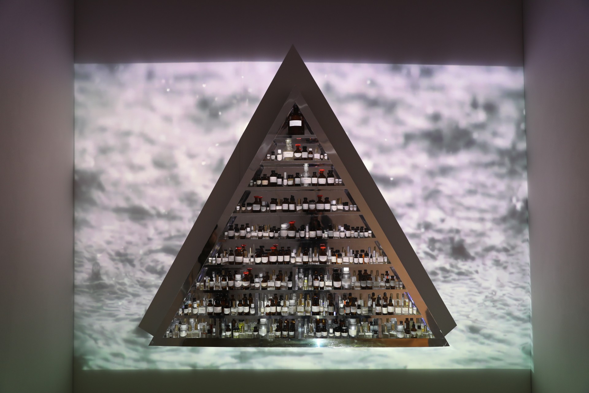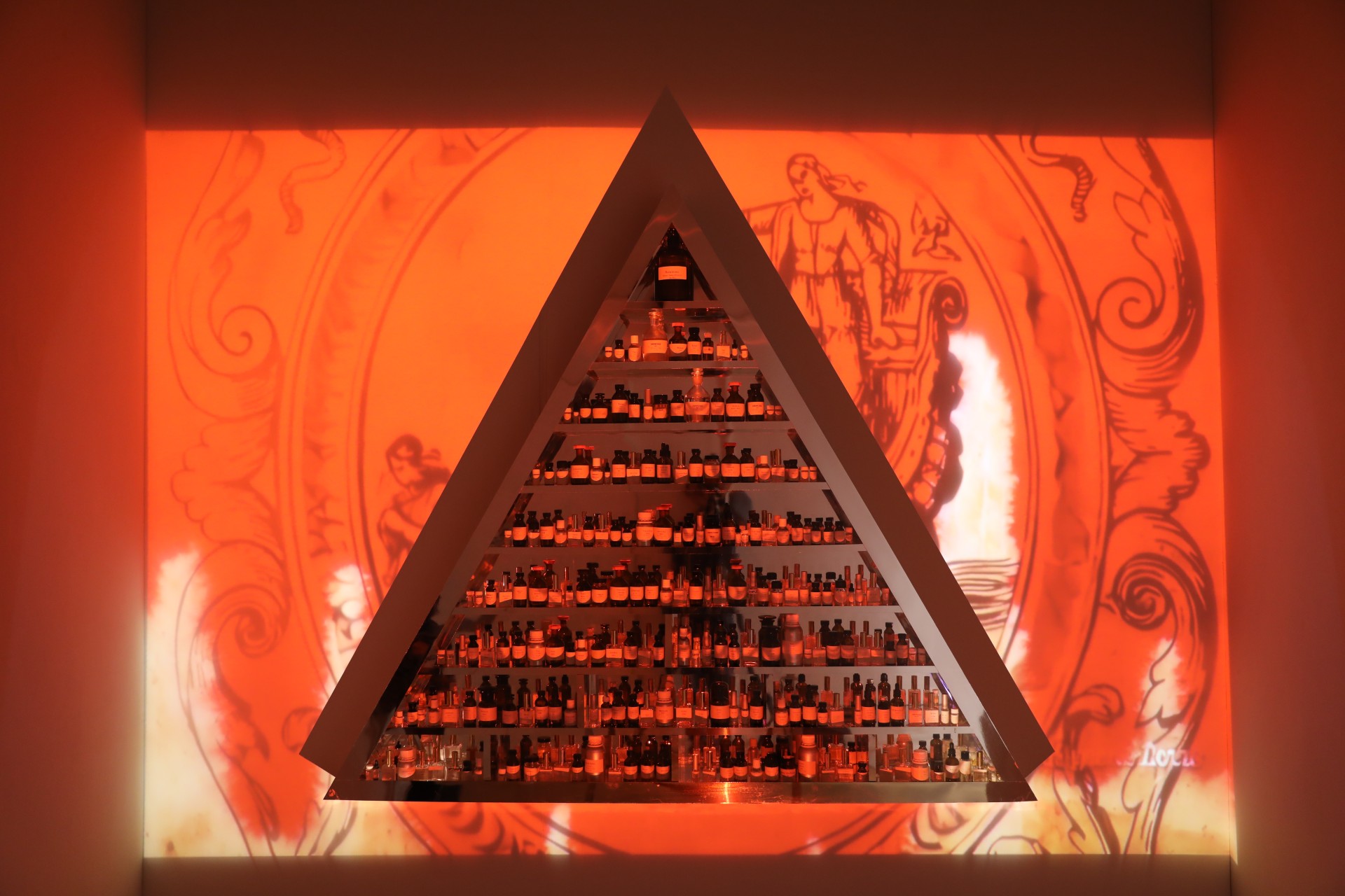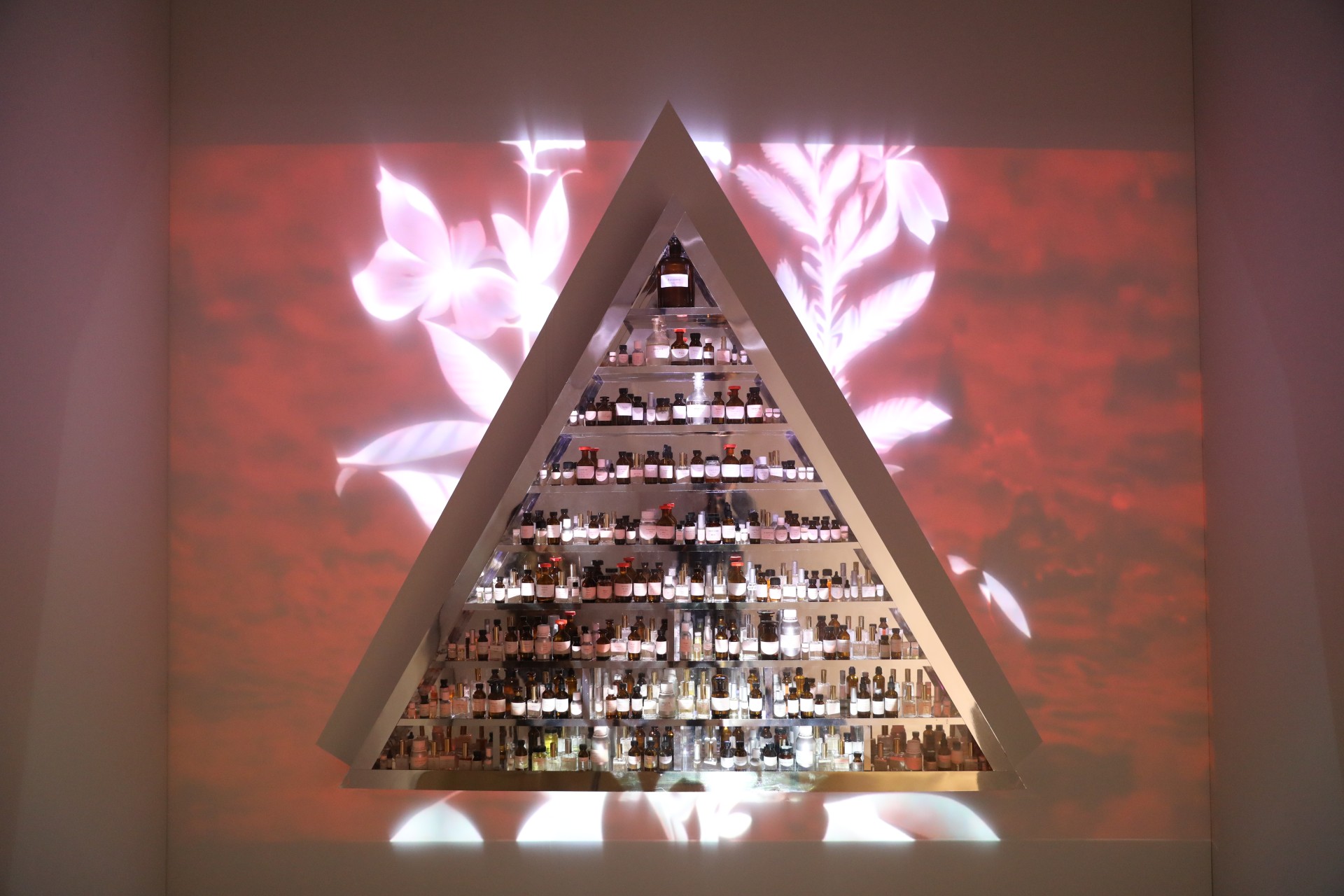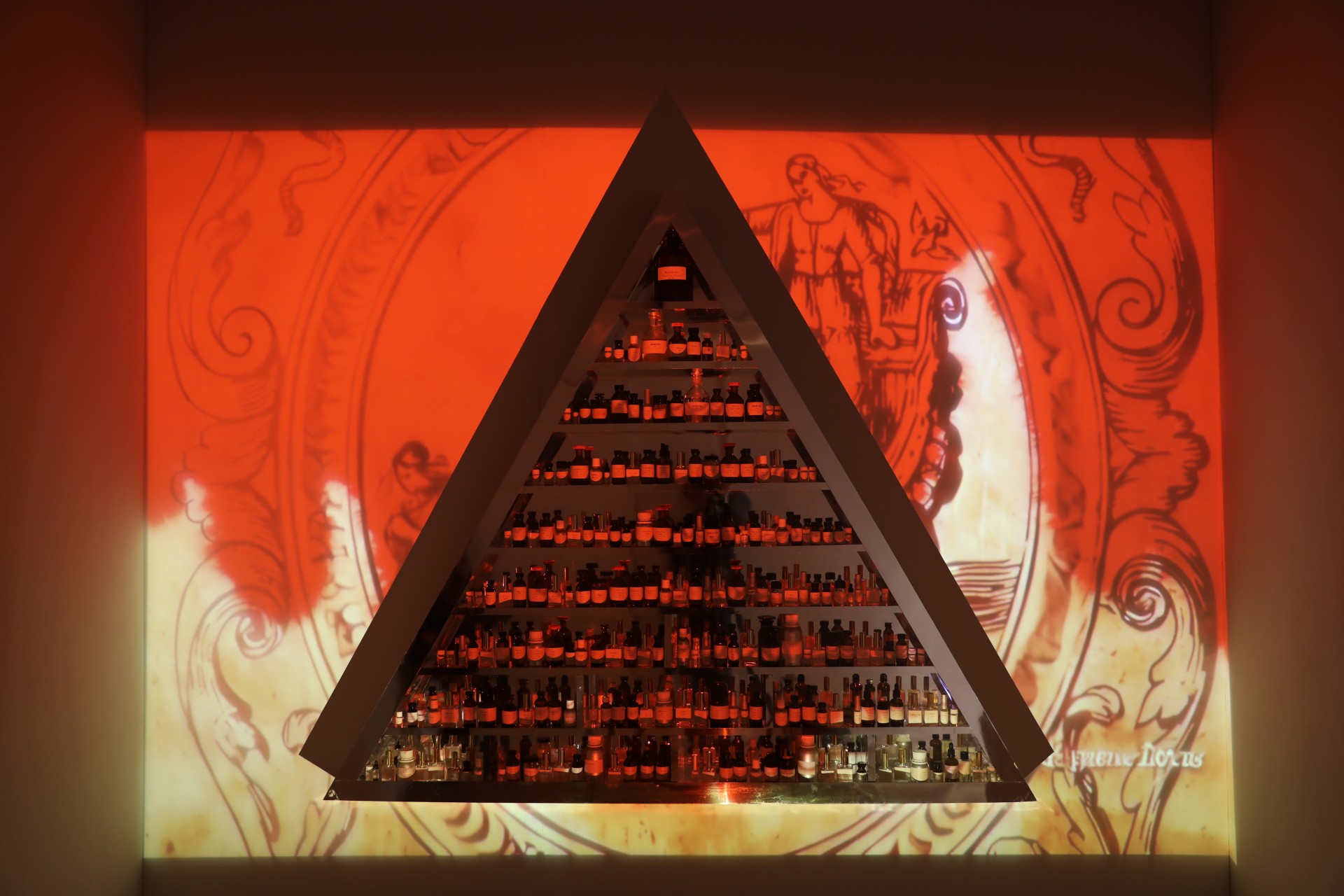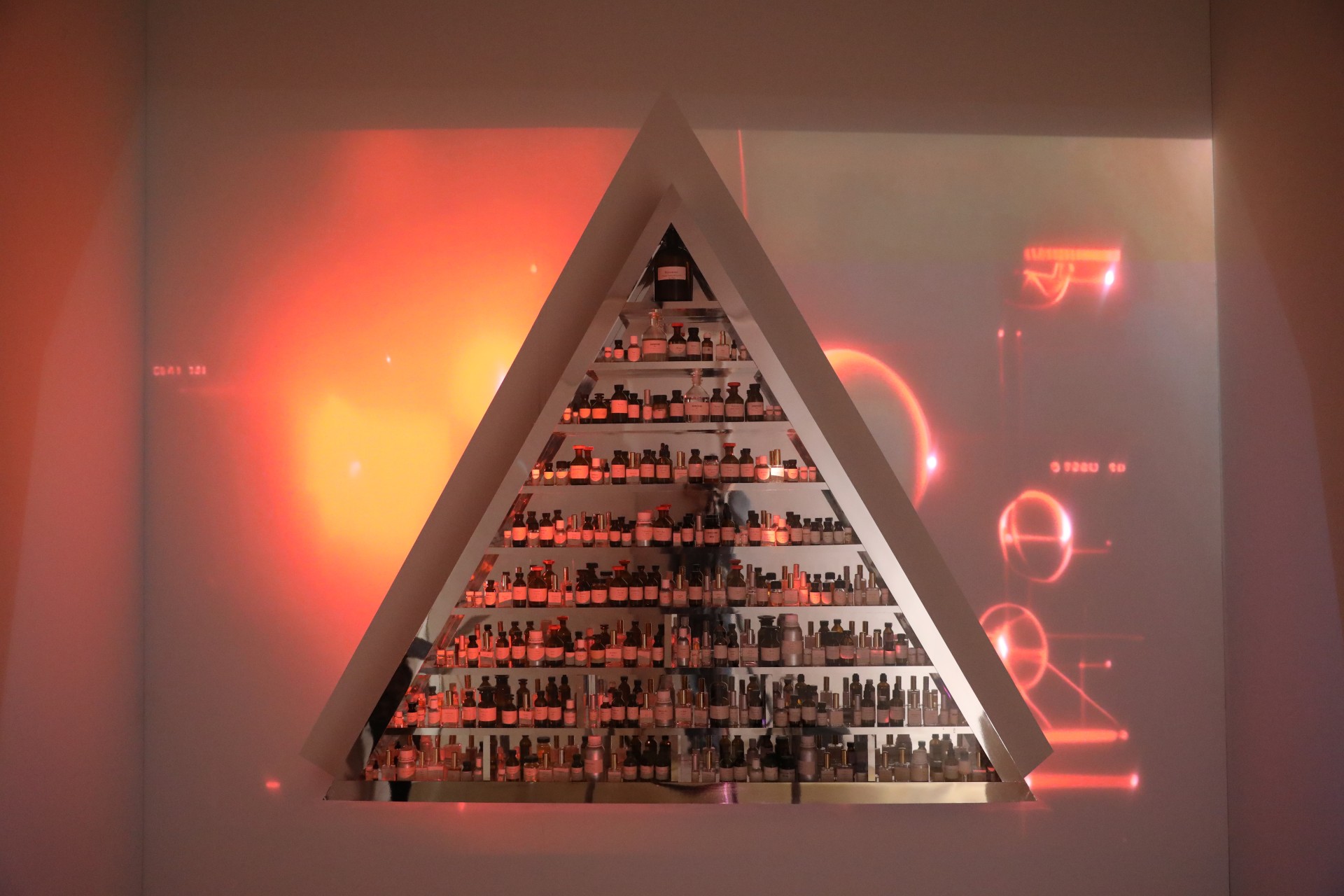 Each part of the formulation process, where you will physically see the notes, the ingredients, the accords, which have been encased in the giant Fragrance Pyramid also designed by me.