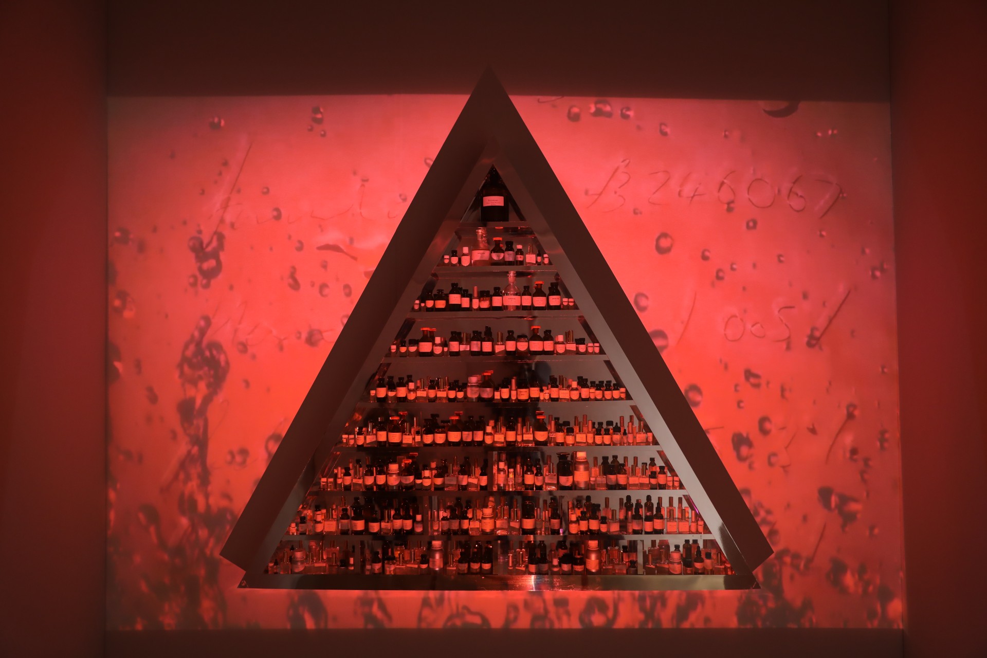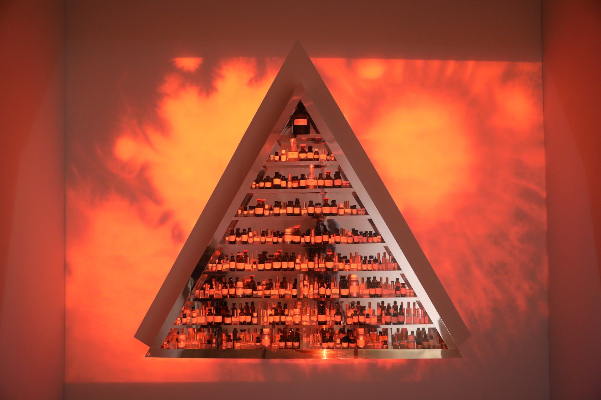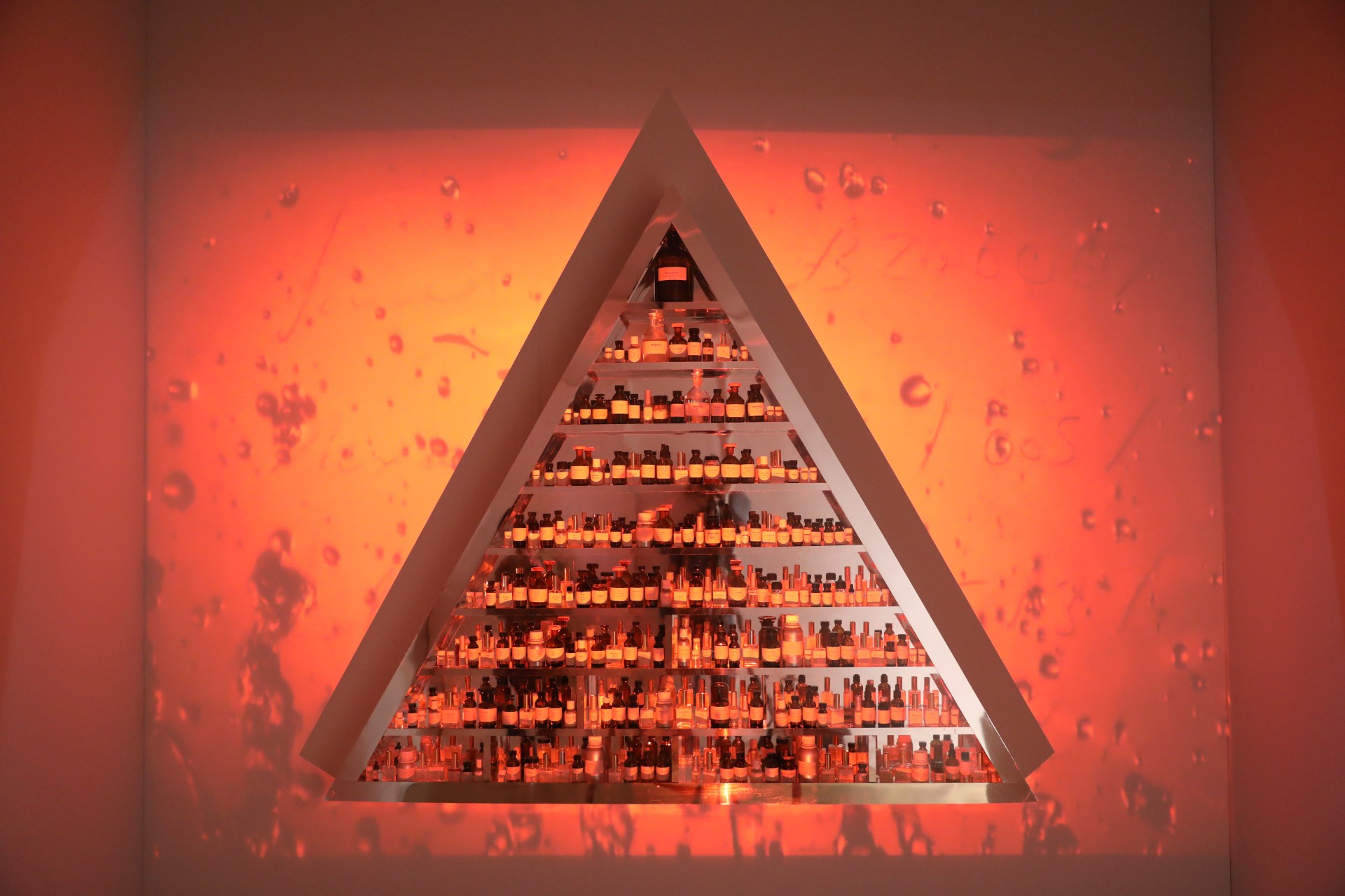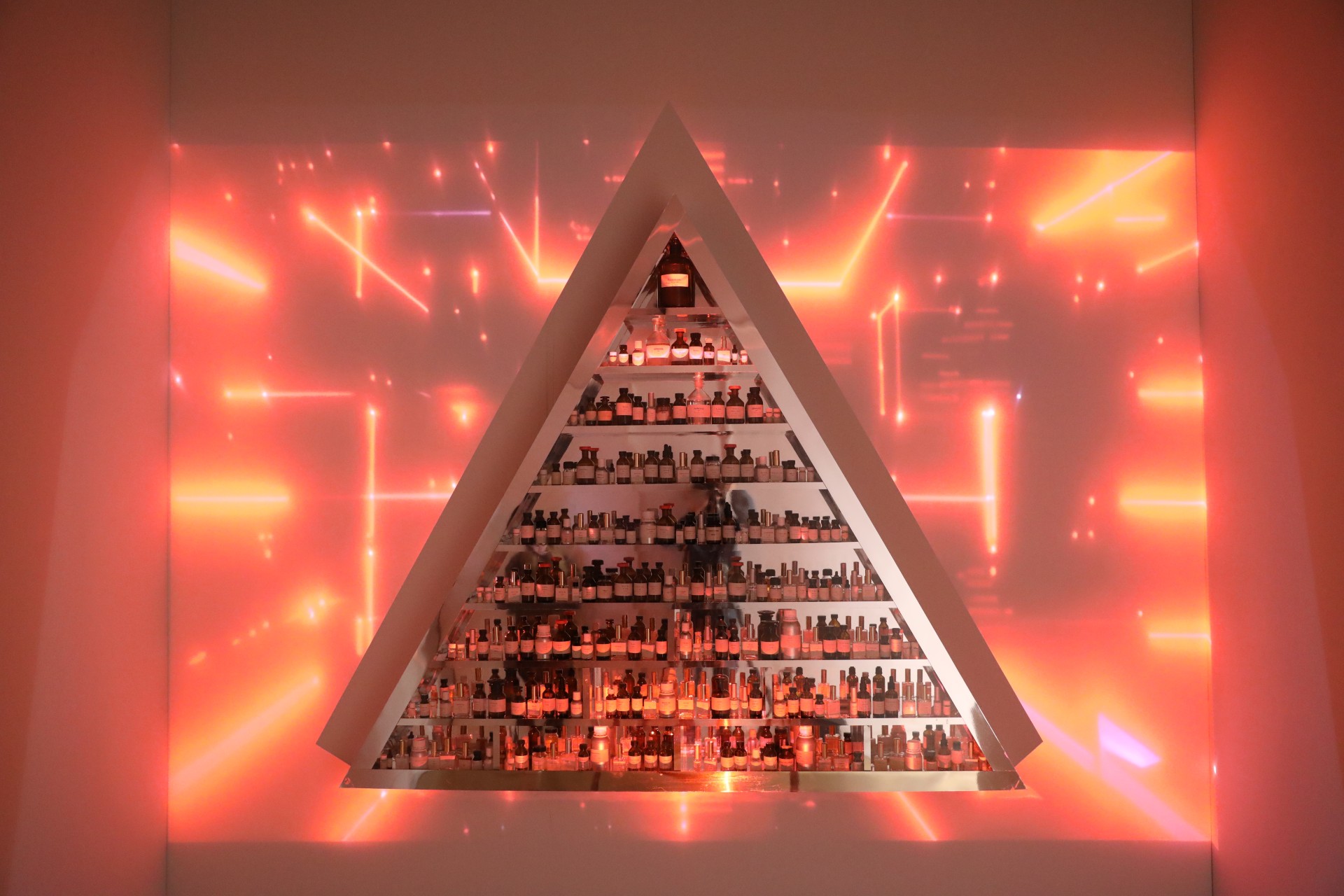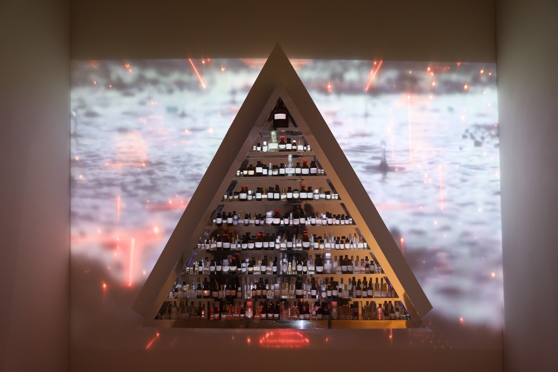 Each part of the formulation process, where you will physically see the notes, the ingredients, the accords, which have been encased in the giant Fragrance Pyramid also designed by me.