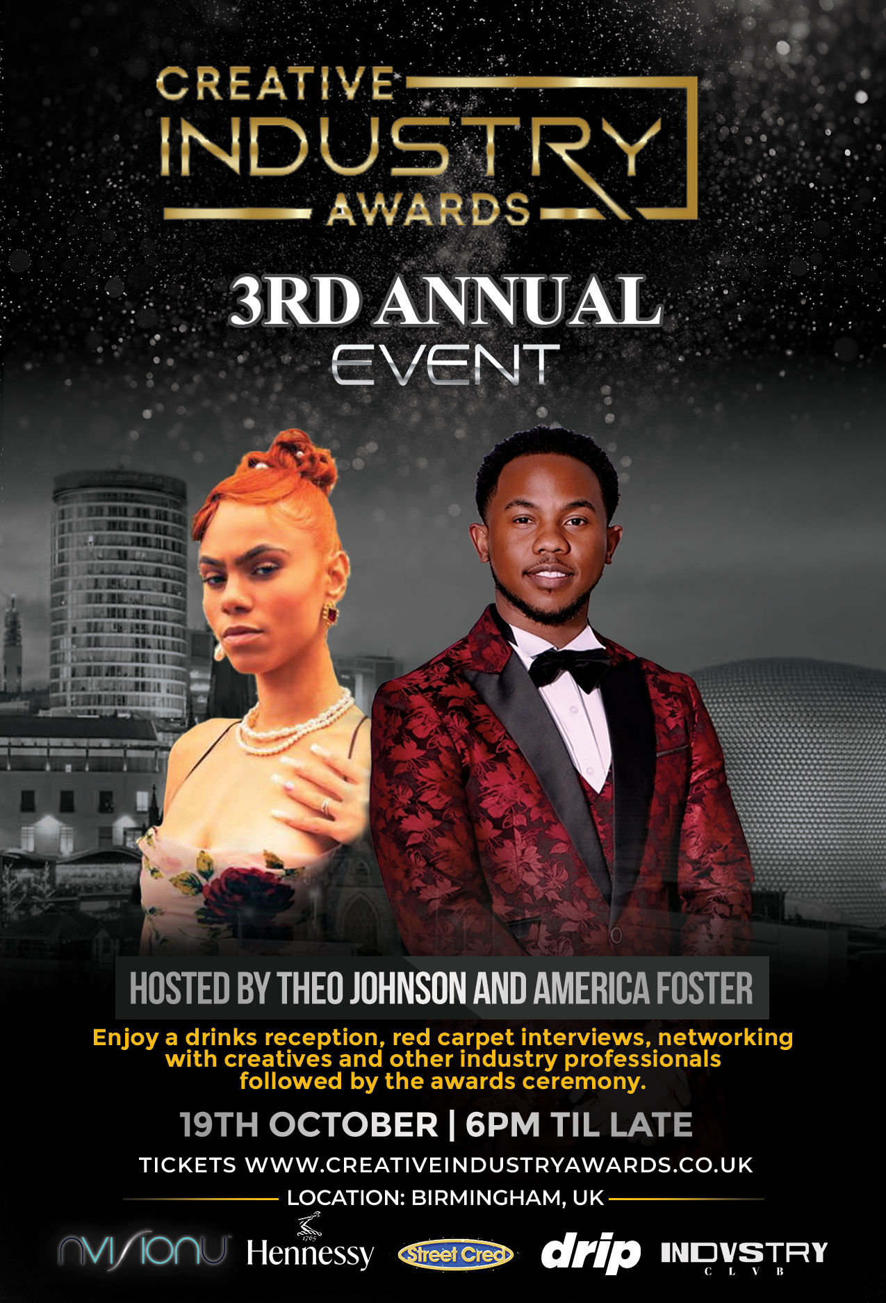 Birmingham is set to host the 3rd annual Creative Industry Awards on October 19th, an event that has quickly become a staple in the UK’s creative scene. Hosted by Theo Johnson from BBC 1Xtra and the sensational America Foster, this year’s ceremony promises to be a dynamic celebration of the best in the creative industries. With performances by Lo Williams, Chubz, and more exciting names yet to be announced, the evening will be an unforgettable experience for all.