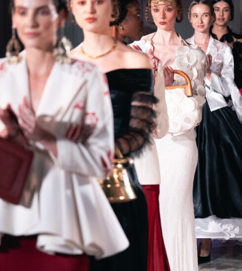 For women, Jam & Jay have opted for Parisian elegance: incorporating sexy white silk bodices, skirts mixed with soft leather and structured black silks, as well as trousers and blazers inspired by men’s wardrobes – keeping the androgynous fashion style.