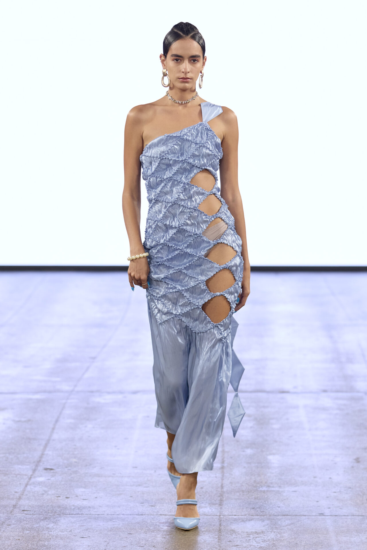 This season, JU-NNA draws inspiration from the captivating sculpture “Alternating Rhythm” by Maria Bartuszová and the mesmerizing waves created in water on rivers, seas, and lakes. This concept combines the artistic essence of London’s fashion scene with the elegance and tranquility of Japanese design, resulting in a unique fusion of cultural influences, reflected beautifully in the nail designs made by Soukashi Team Japan (nail designers: CANAILL, Atelier ilsogno, EVA, NOBU, Abbie, MCOUTURE, sucre). Soukashi Team Japan has previously showcased their outstanding nail designs internationally.