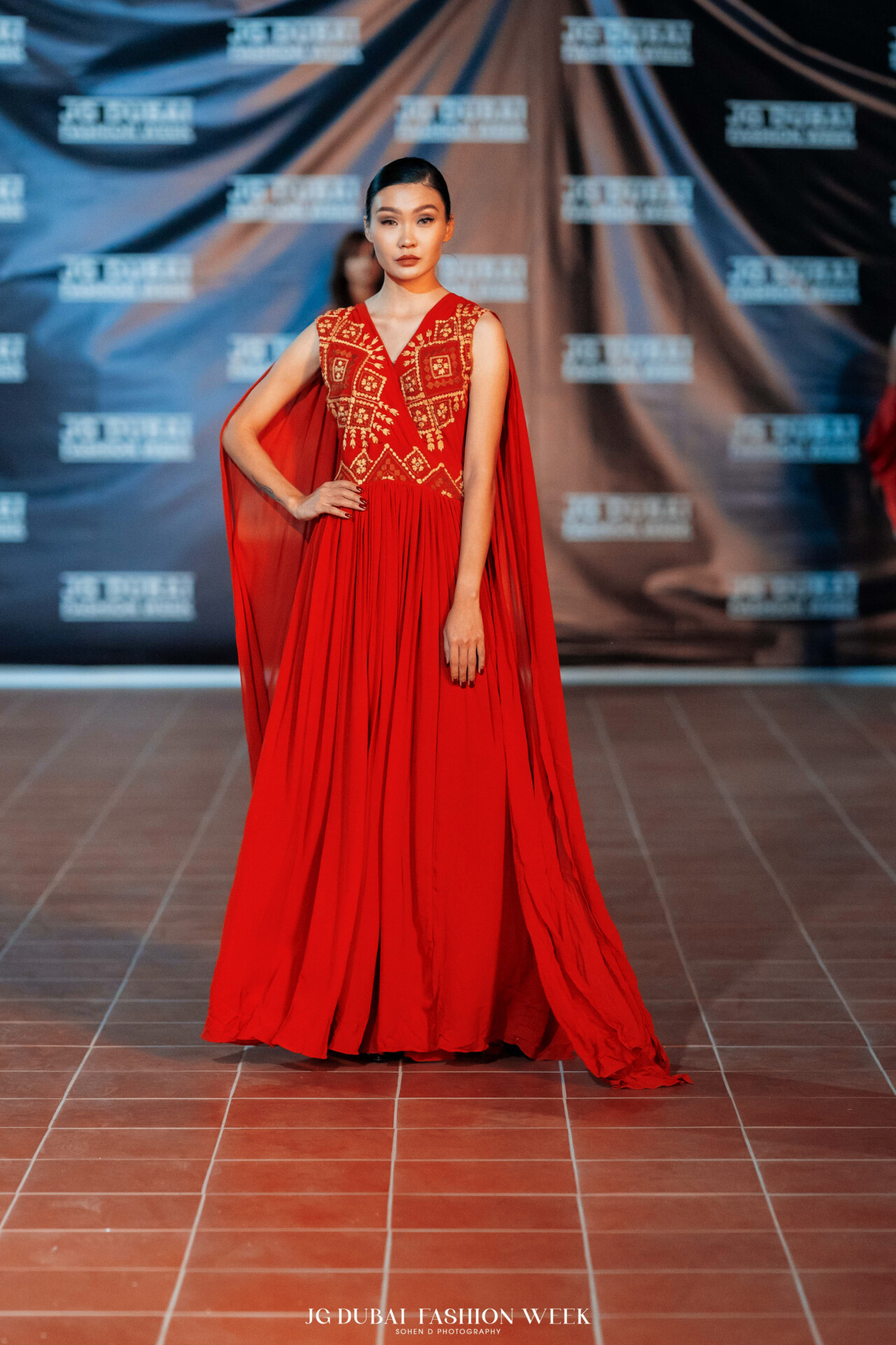Guests in Dubai were treated to a captivating runway presentation set against the city’s iconic skyline, where Mansoor’s artful synthesis of historical influence and present-day design shone through.