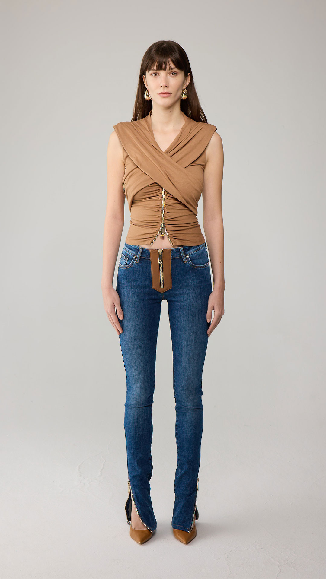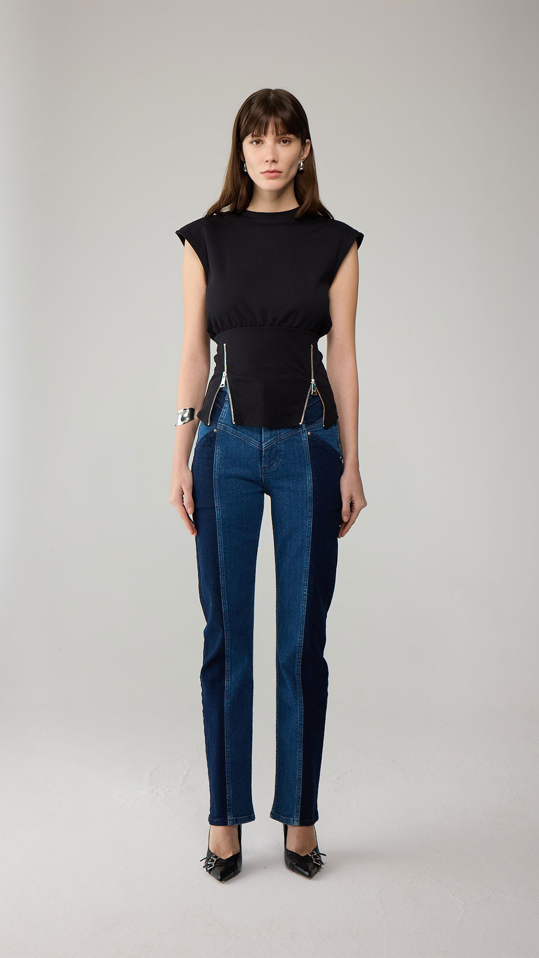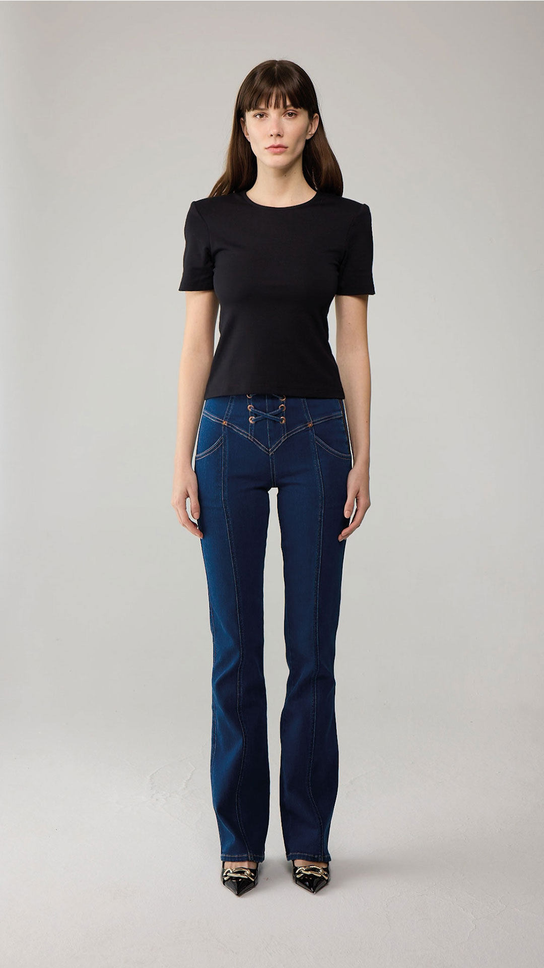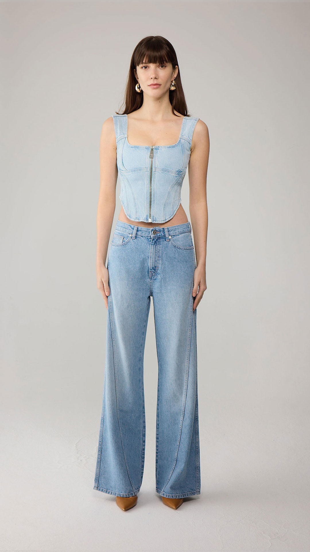 At Rhodaine, the rich heritage of denim is fused with a fresh perspective, reinterpreting classic styles through an innovative lens. The collection is characterized by refined tailoring and contemporary cuts, ensuring that each piece maintains a sense of femininity while standing out for its modern design.